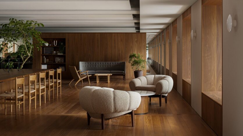 Lush plants and gravel beds feature in the “stress-free” Tokyo offices of real estate company Mitsui & Co, designed by local interior studio Flooat.